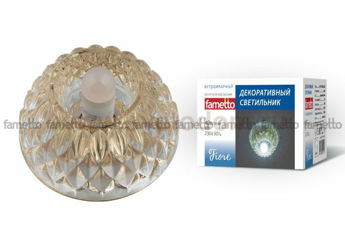 DLS-F116 G9 GOLD/CLEAR Светильник декоративный встраиваемый ТМ Fametto, серия Fiore. Без лампы, цоколь G9. Основание металл, цвет золотой. Отделка