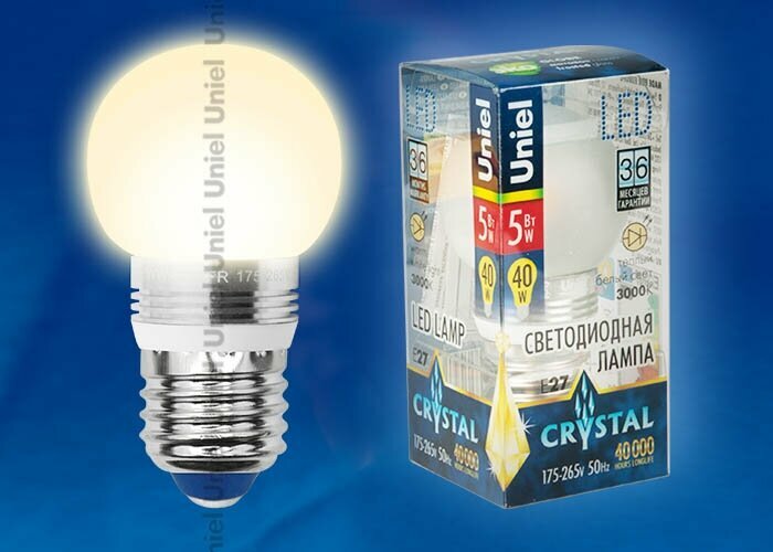 LED-G45P-5W/WW/E27/FR ALC02SL PROMO Лампа светодиодная. Форма «шар», матовая колба. Серия Crystal. Материал корпуса алюминий. Теплый белый свет. Пласт