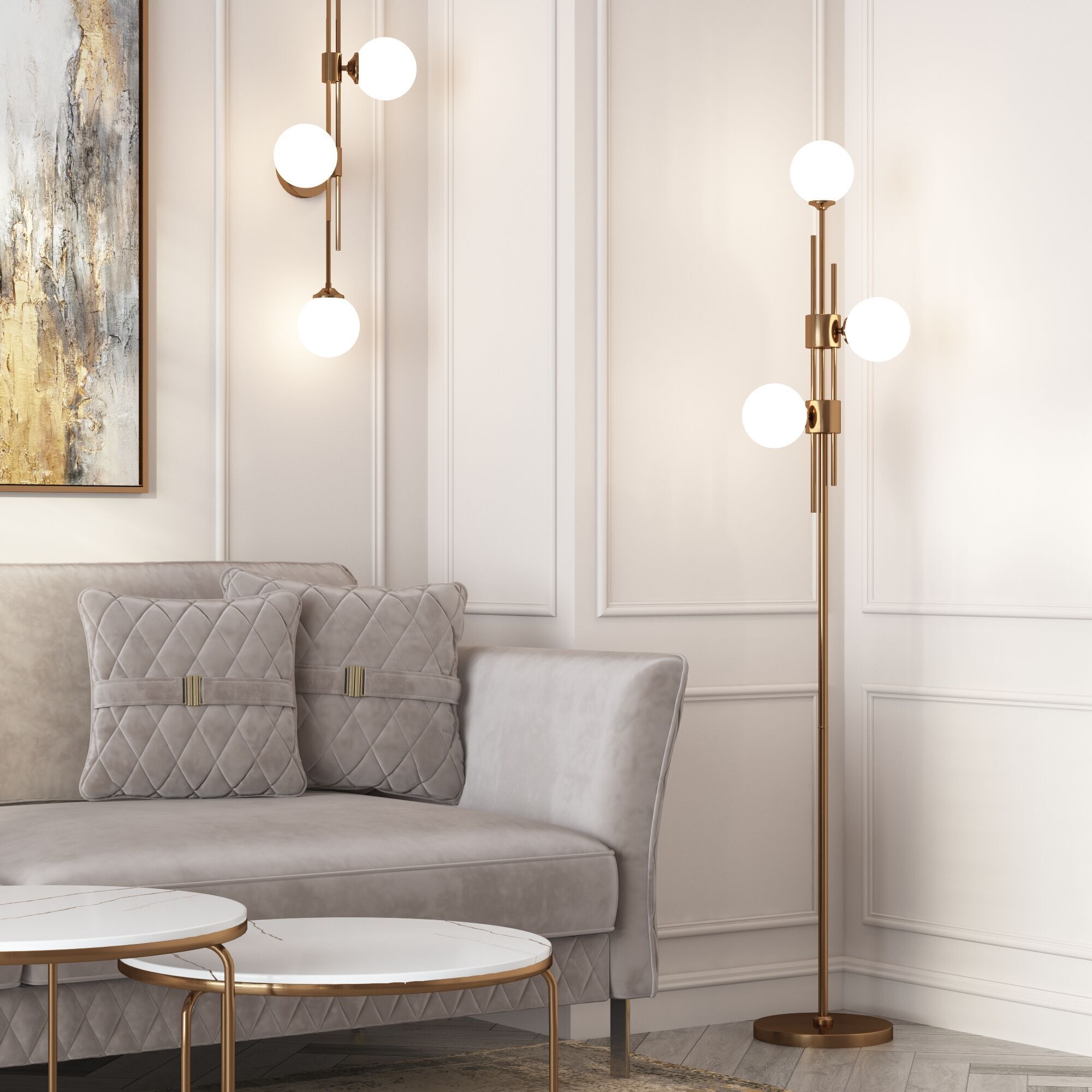 Напольный светильник со стеклянными плафонами 01383/3 латунь