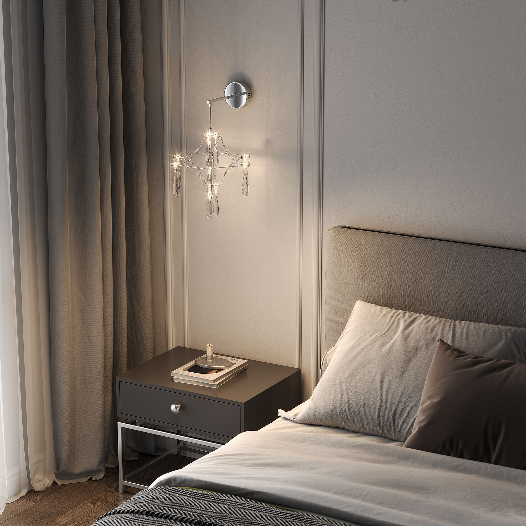Настенный светодиодный светильник с фигурным хрусталем 442/1 хром