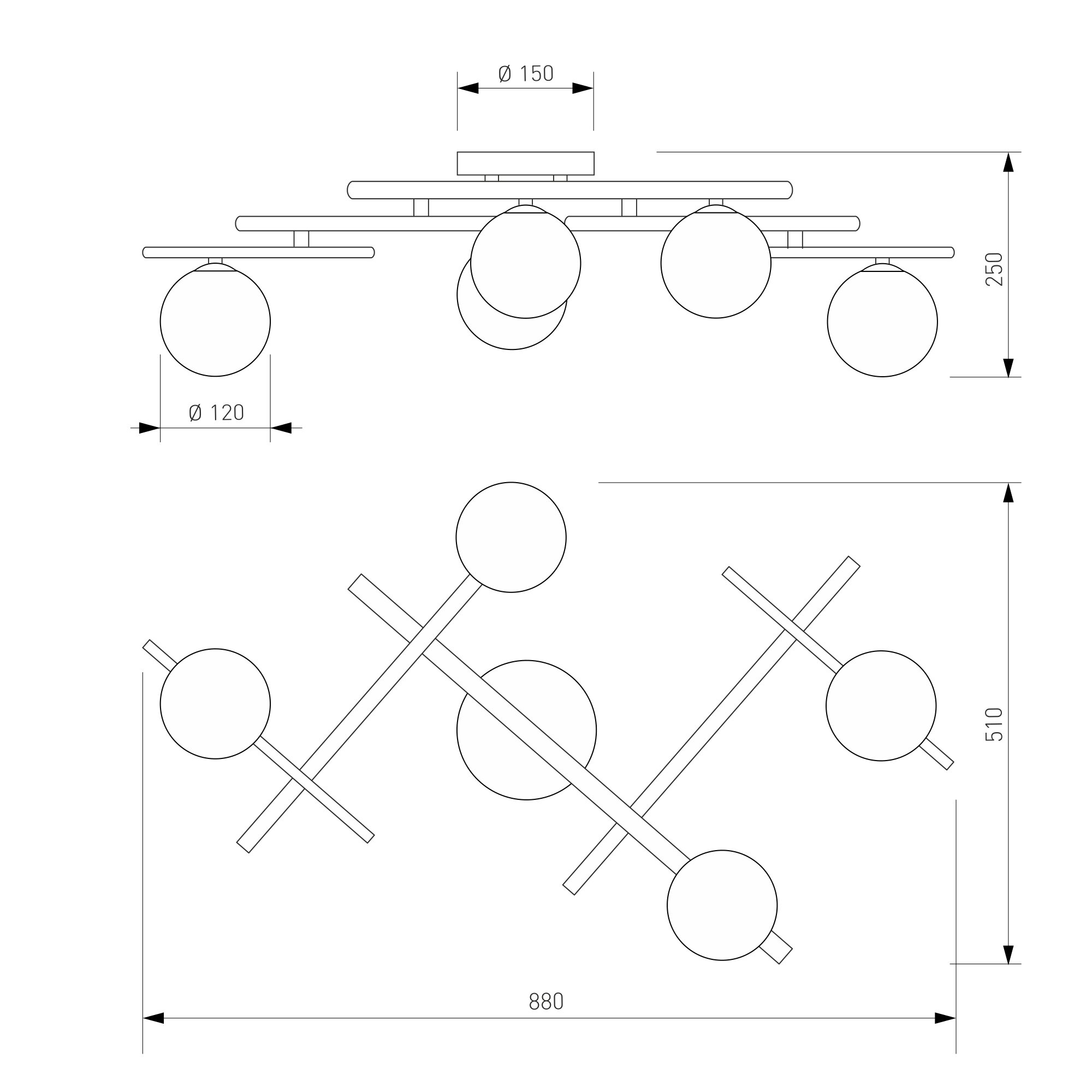 Потолочный светильник со стеклянными плафонами 502001/5 латунь