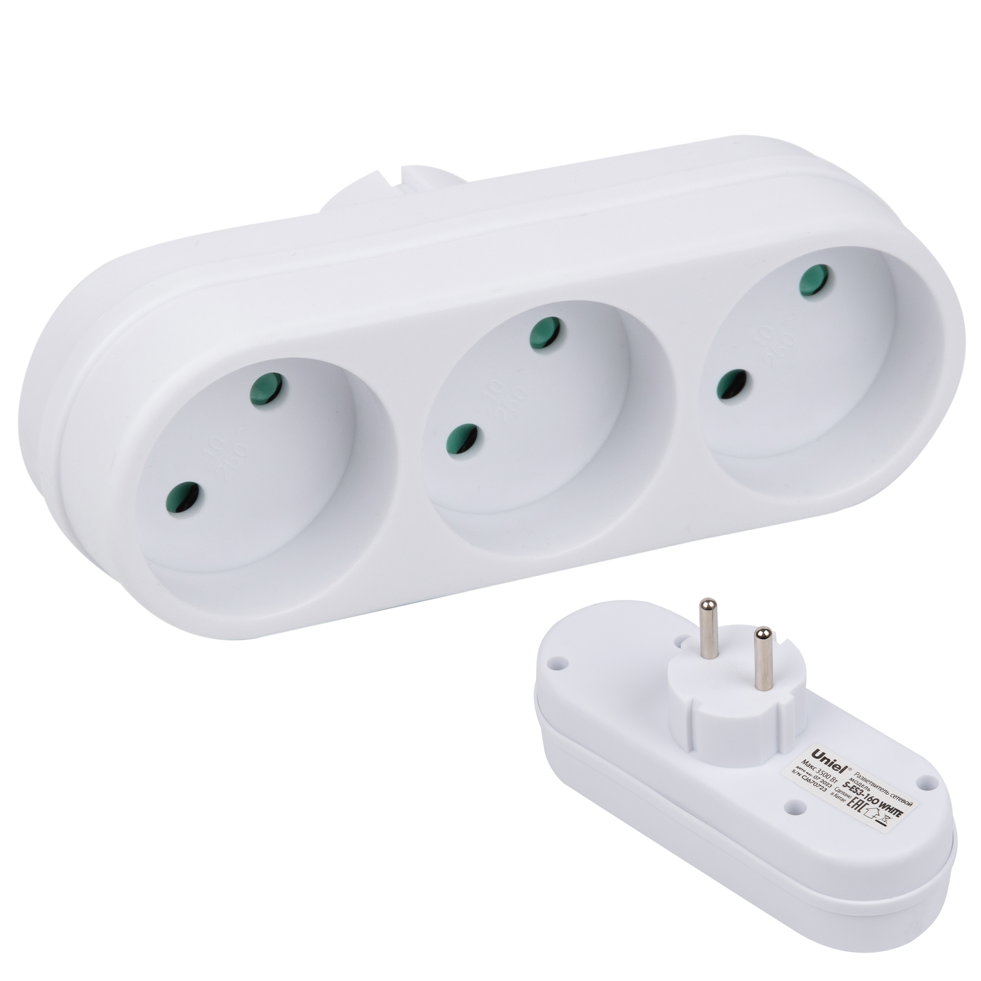 S-ES3-16O WHITE Разветвитель сетевой, б/з. 3 гнезда. 16А, 3500Вт. Белый. ТМ Uniel