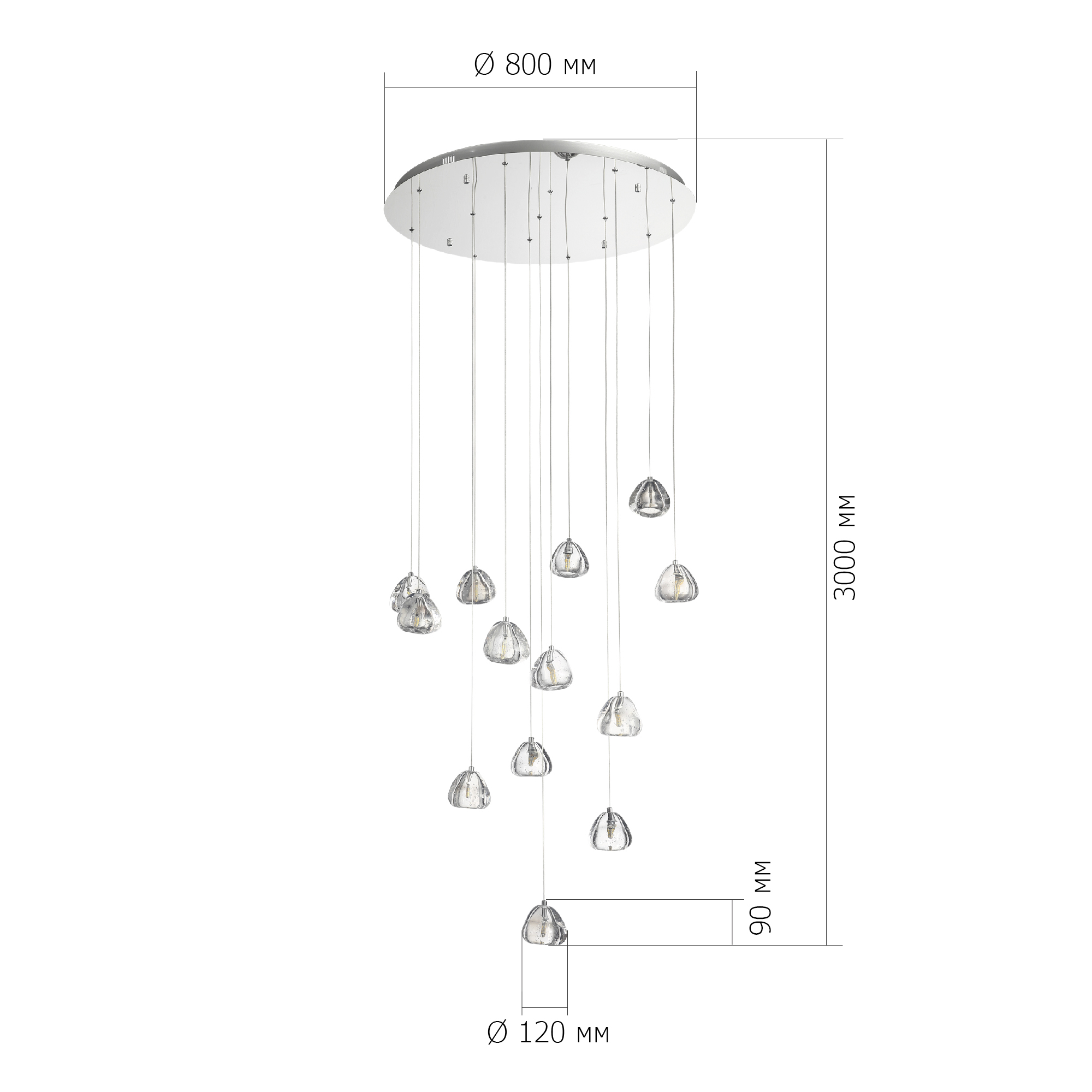 SL6017.101.13 Светильник подвесной ST-Luce Хром/Прозрачный с пузырьками воздуха LED 13*3W 3000K WATERFALL