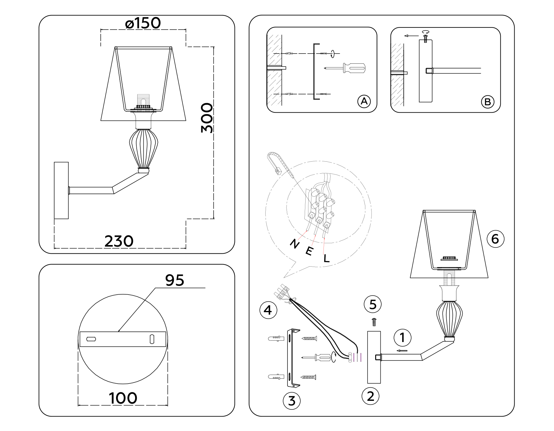 Светильник настенный LH75065 CH/BK хром/черный E14 max 40W 230*150*300