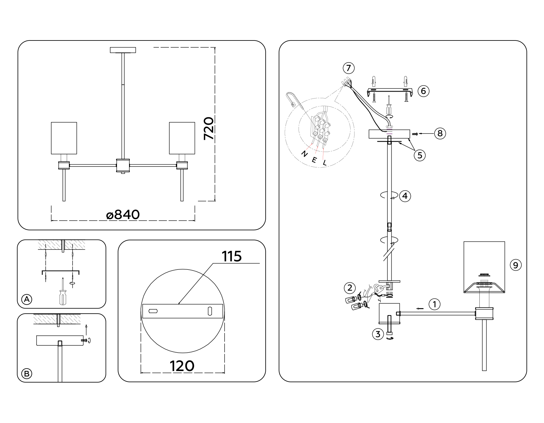 Светильник подвесной LH72373/7 DBS/WH темная латунь/белый E14/7 max 40W D840*720