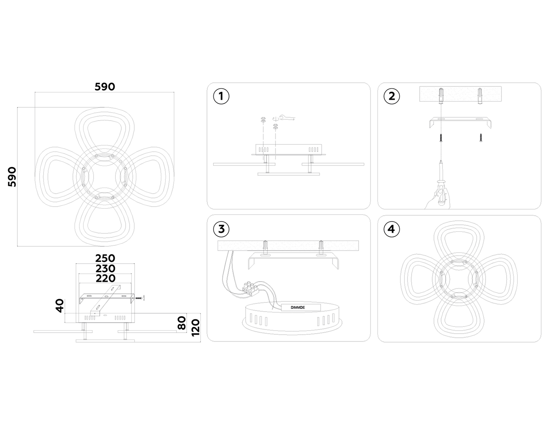 Светильник светодиодный потолочный с пультом FA8925/4+1 WH/CH белый/хром 163W 3000K-6400K 590*590*120 (ПДУ РАДИО 2.4G)