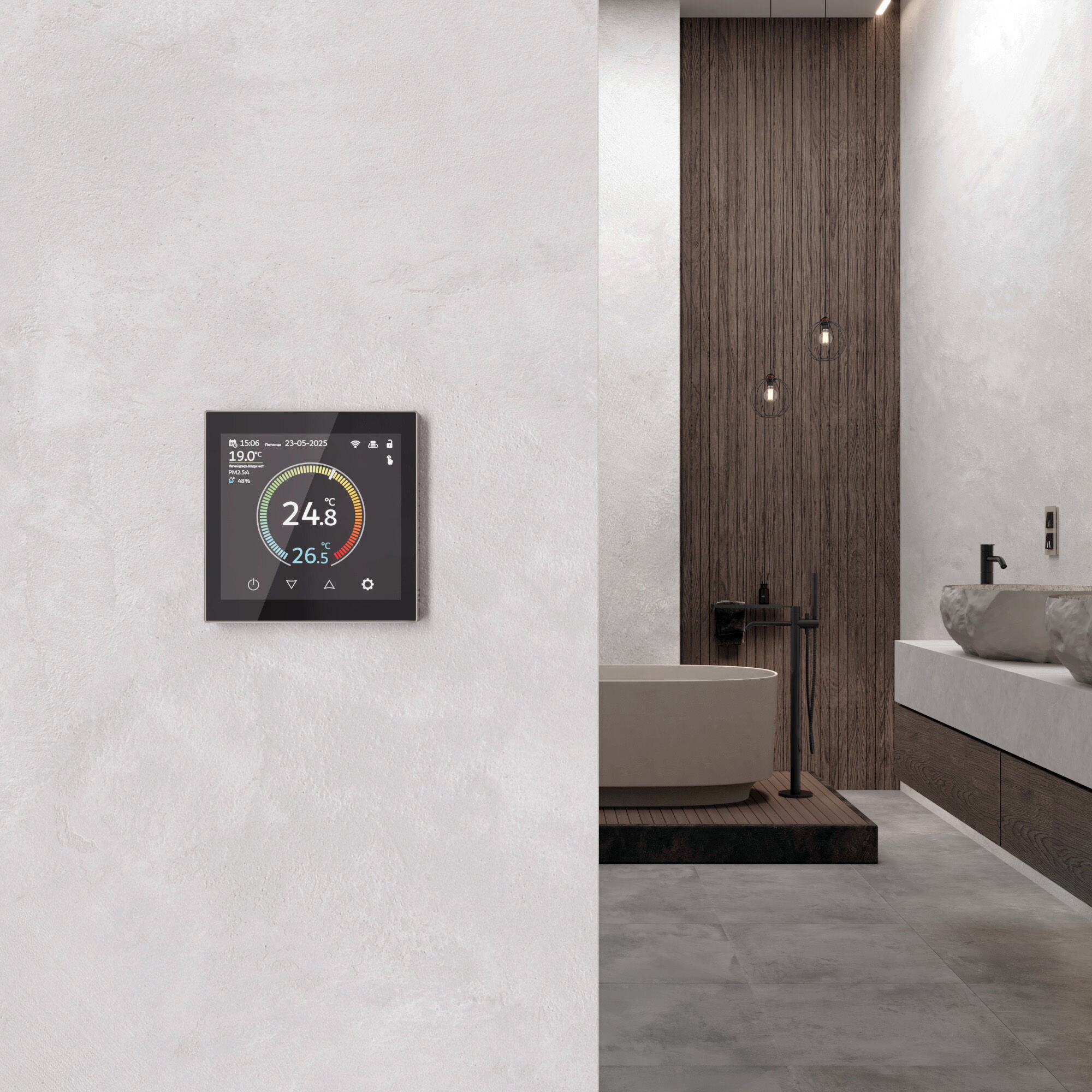 Умный сенсорный терморегулятор с LCD дисплеем дымчатый W1851104