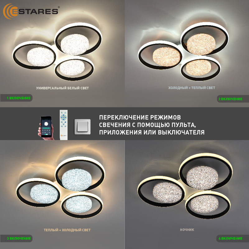 Управляемая светодиодная люстра POLLO double 100W 3R-APP-550x70-BLACK/WHITE/WHITE-220-IP20